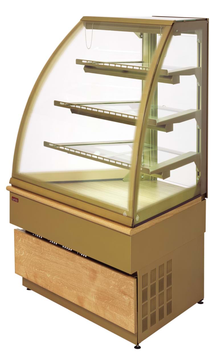 The Georgia Corner 45 Food Display Cabinet is manufactured in Europe by Unis and is available exclusively in Australia, New Zealand and Oceania through Meris Food Equipment.